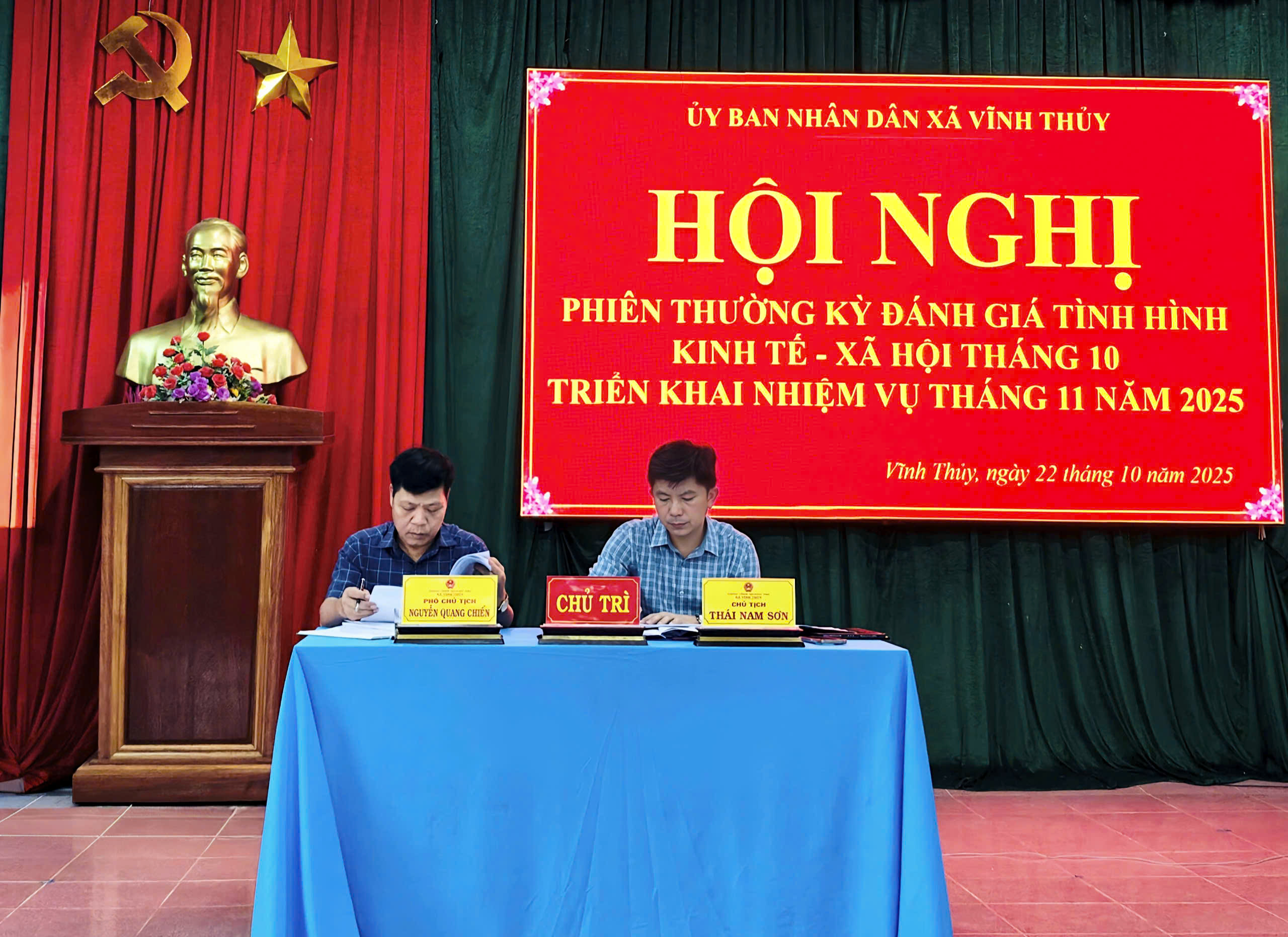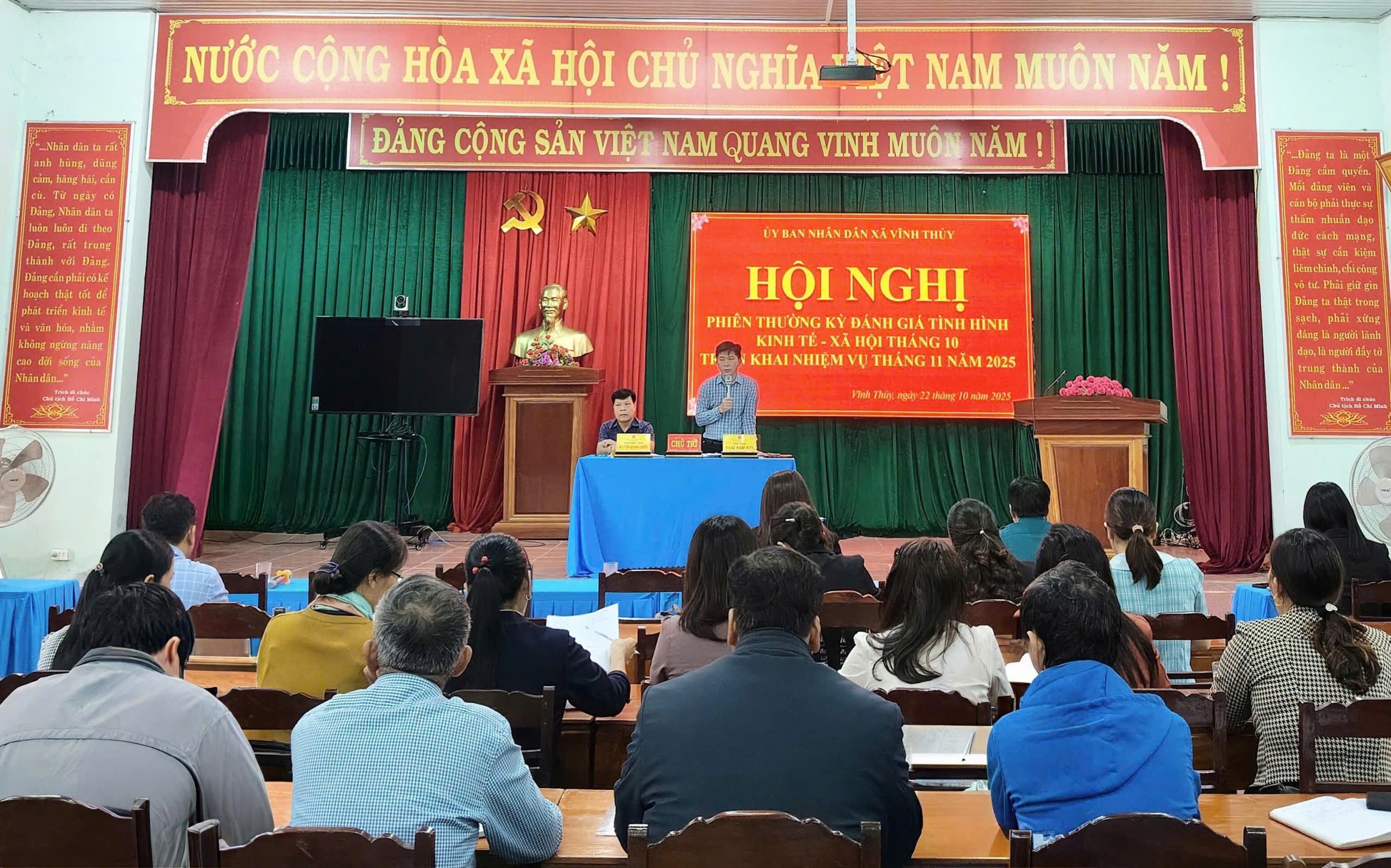 UBND xã Vĩnh Thủy tổ chức hội nghị phiên thường kỳ đánh giá tình hình Kinh tế - Xã hội tháng 10 năm 2025.