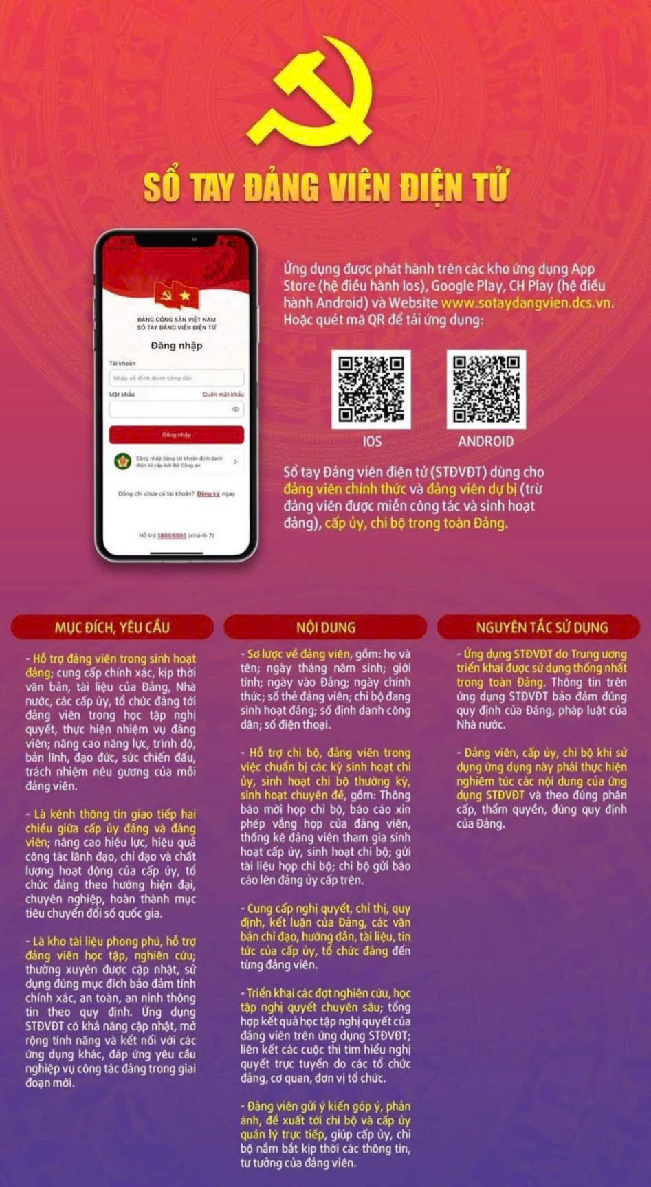 - Là kho tài liệu phong phú, hỗ trợ đảng viên học tập, nghiên cứu; thường xuyên được cập nhật, sử dụng đúng mục đích bảo đảm tính chính xác, an toàn, an ninh thông tin theo quy định, ứng dụng sổ tay đảng viên điện tử có khả năng cập nhật, mở rộng tính năng và kết nối với các ứng dụng khác, đáp ứng yêu câu nghiệp vụ công tác đảng trong giai đoạn mới.