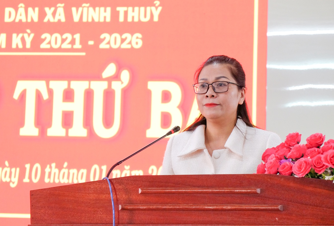 Phát biểu khai mạc tại kỳ họp, đồng chí Nguyễn Thị Thu Hà - Bí thư Đảng ủy, Chủ tịch HĐND xã nhấn mạnh: Năm 2025 là năm có ý nghĩa đặc biệt quan trọng trong việc thực hiện các mục tiêu Nghị quyết Đại hội XIII của Đảng, Nghị quyết Đại hội lần thứ I của Đảng bộ xã Vĩnh Thuỷ; đồng thời, chuẩn bị cho cuộc bầu cử đại biểu Quốc hội  và đại biểu HĐND các cấp nhiệm kỳ 2026 - 2031.