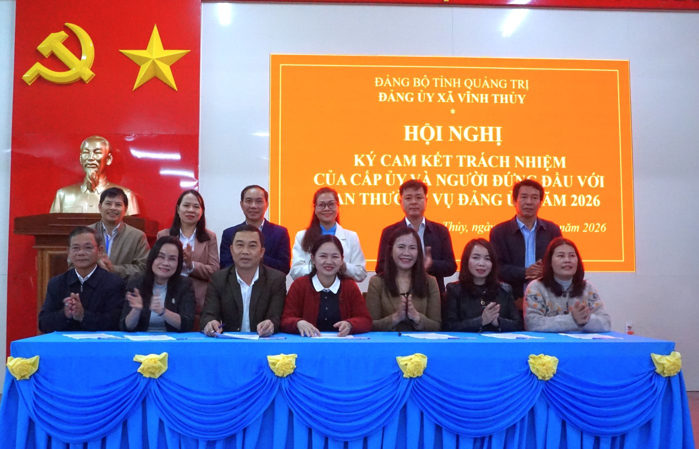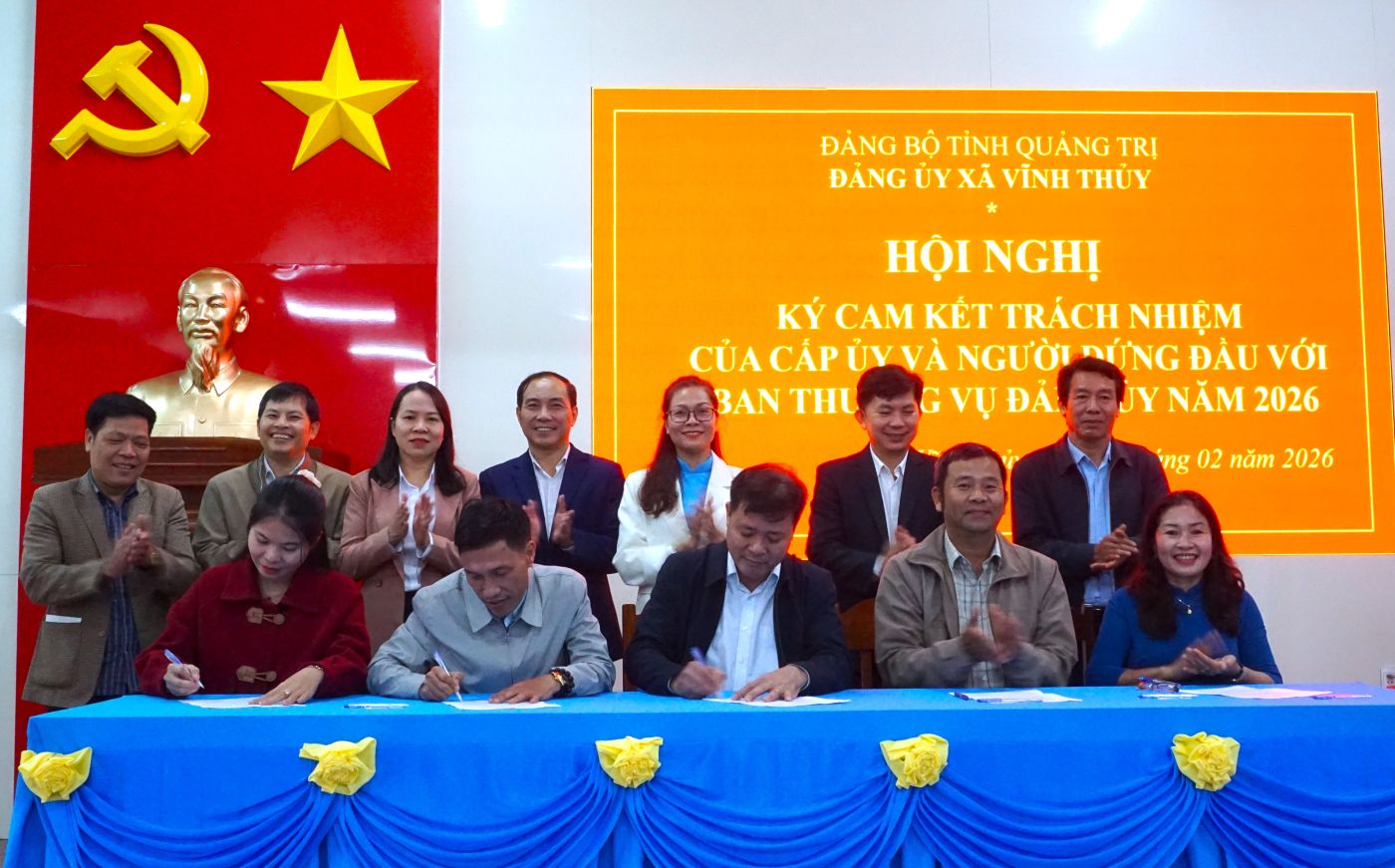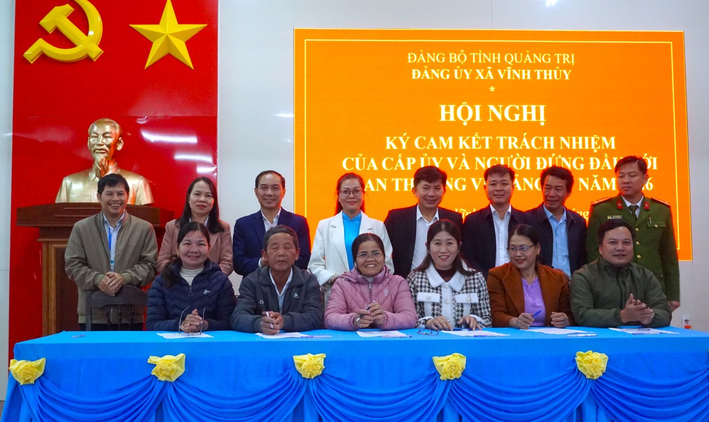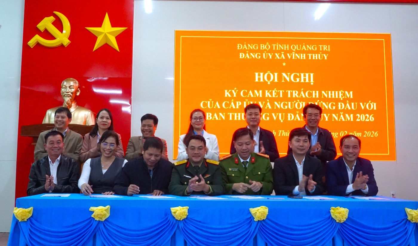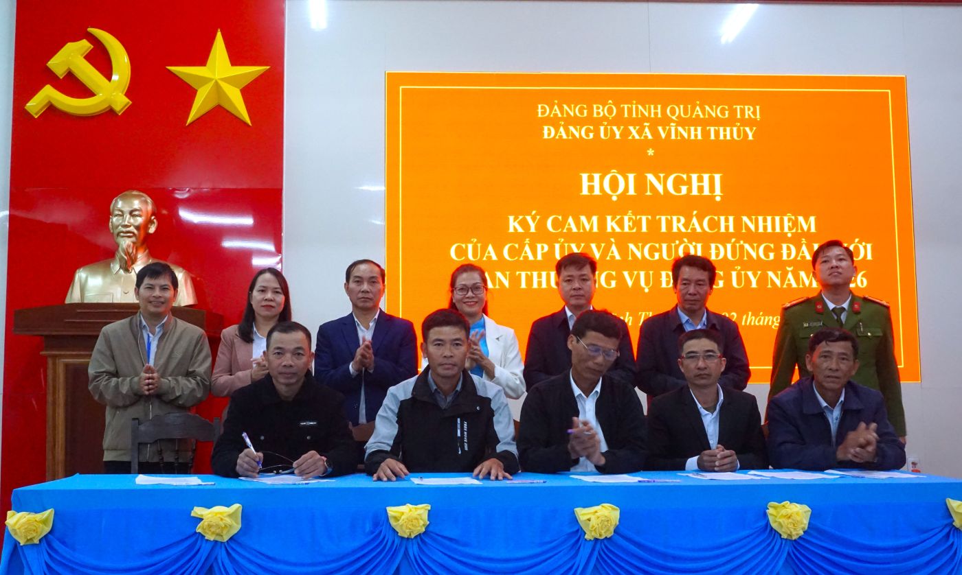 Ngày 02/02/2026, Đảng ủy xã Vĩnh Thủy tổ chức hội nghị ký cam kết trách nhiệm của cấp ủy và người đứng đầu các cơ quan, đơn vị, chi bộ trực thuộc với Ban Thường vụ Đảng ủy xã năm 2026.