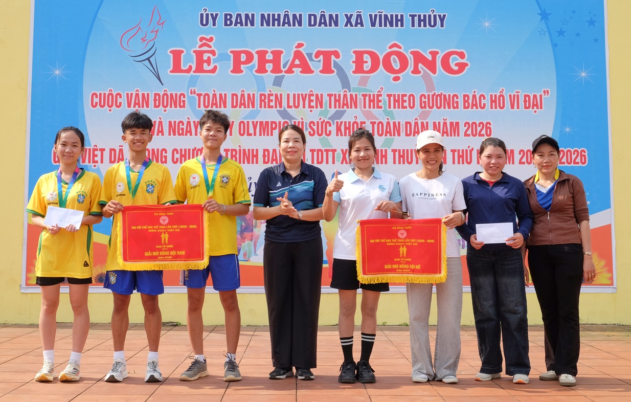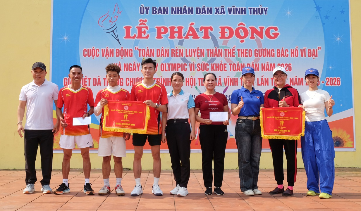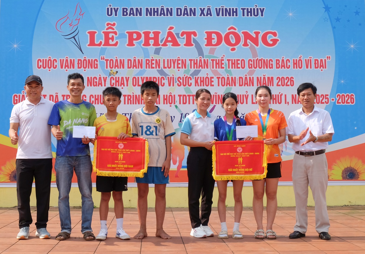 Hòa trong không khí thi đua sôi nổi chào mừng thành công cuộc bầu cử đại biểu Quốc hội khóa XVI và đại biểu HĐND các cấp nhiệm kỳ 2026- 2031; kỷ niệm 80 năm Ngày truyền thống ngành Thể dục - Thể thao Việt Nam (27/3/1946- 27/3/2026) và 80 năm Ngày Bác Hồ viết bài “Sức khỏe và thể dục” kêu gọi toàn dân rèn luyện thân thể, ngày 19/3/2026, xã Vĩnh Thủy tổ chức Lễ phát động Cuộc vận động “Toàn dân rèn luyện thân thể theo gương Bác Hồ vĩ đại”, Ngày chạy Olympic vì sức khỏe toàn dân năm 2026 và Giải việt dã trong chương trình Đại hội Thể dục Thể thao xã lần thứ I.