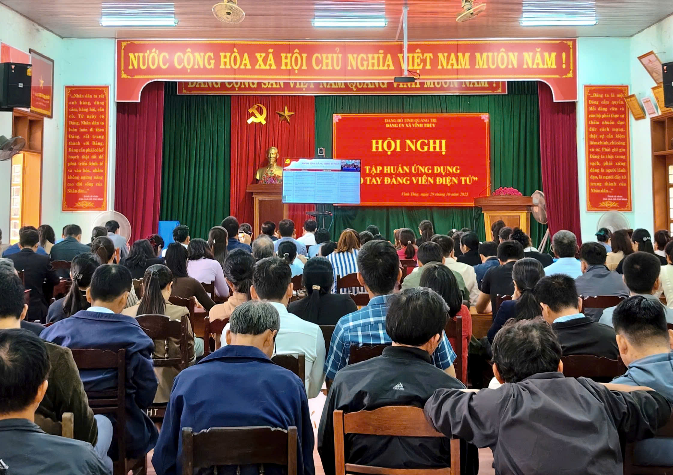 Sáng 29/10/2025, Đảng ủy xã Vĩnh Thủy tổ chức tiếp sóng Hội nghị trực tuyến tập huấn sử dụng ứng dụng “Sổ tay đảng viên điện tử” do Văn phòng Trung ương Đảng triển khai, với sự tham gia của các cơ quan chuyên trách tham mưu, giúp việc của Đảng ủy và cấp ủy các chi, đảng bộ trực thuộc Đảng bộ xã.
