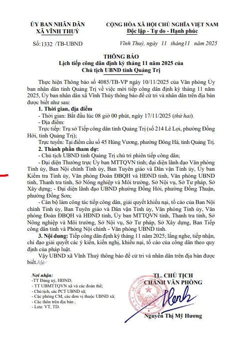 TRANG THÔNG TIN ĐIỆN TỬ UBND XÃ VĨNH THỦY, TỈNH QUẢNG TRỊ