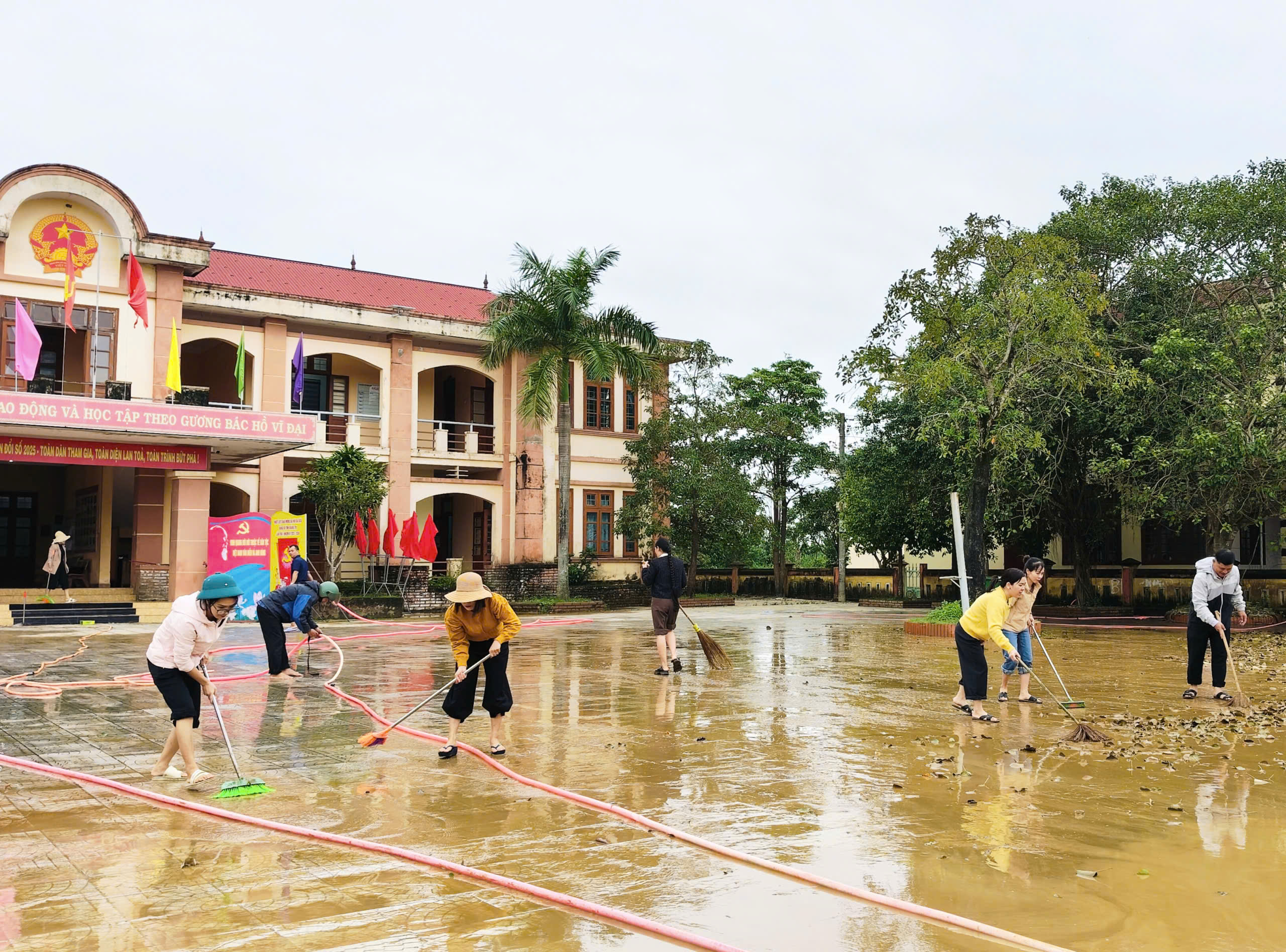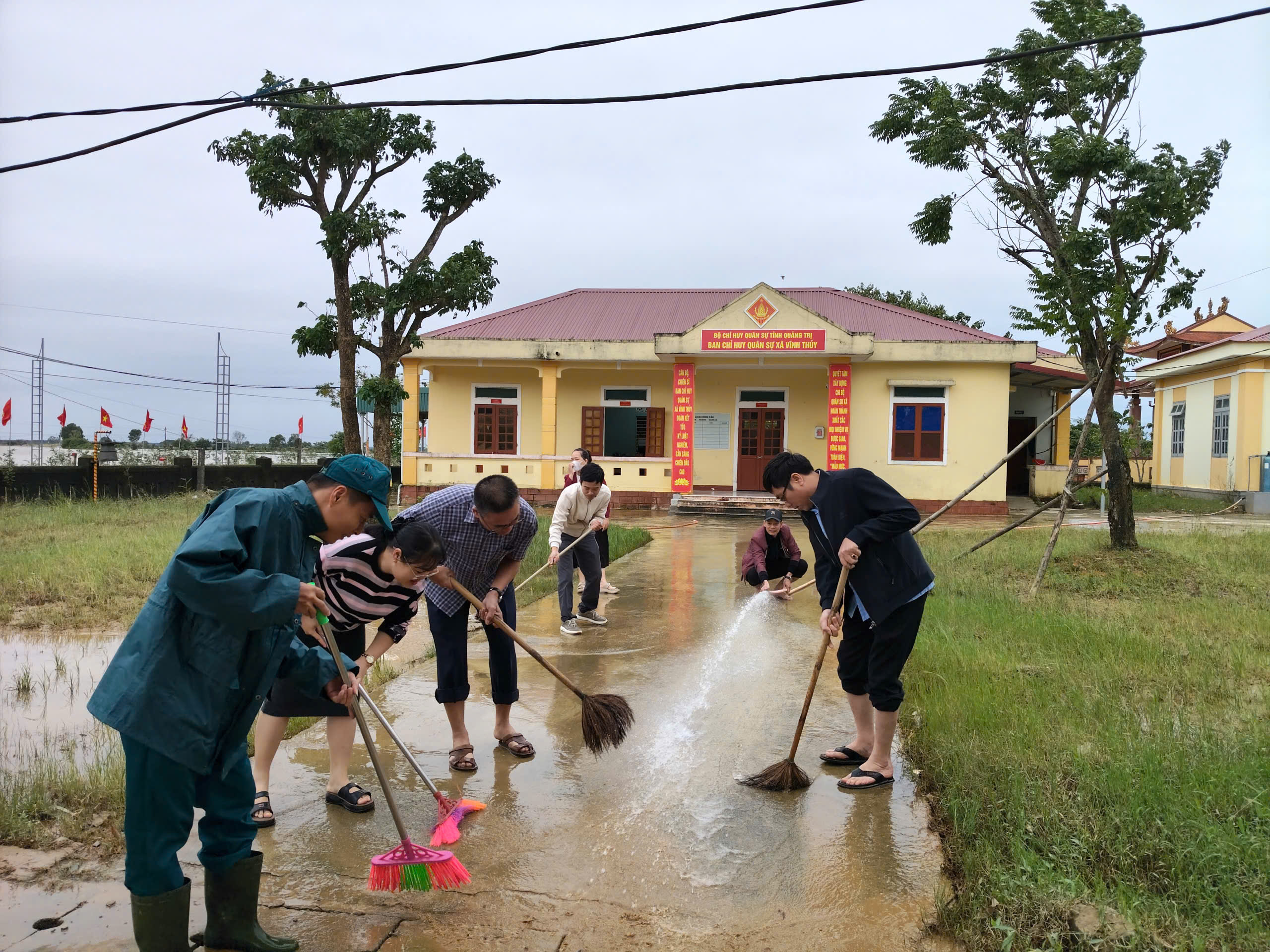 Do mưa lớn kéo dài, những ngày đầu tháng 11, trụ sở HĐND, UBND xã Vĩnh Thủy bị ngập sâu. Ngay sau khi nước rút, toàn thể cán bộ, công chức và người lao động được huy động để tổ chức dọn dẹp, vệ sinh môi trường, đảm bảo an toàn, thông thoáng.