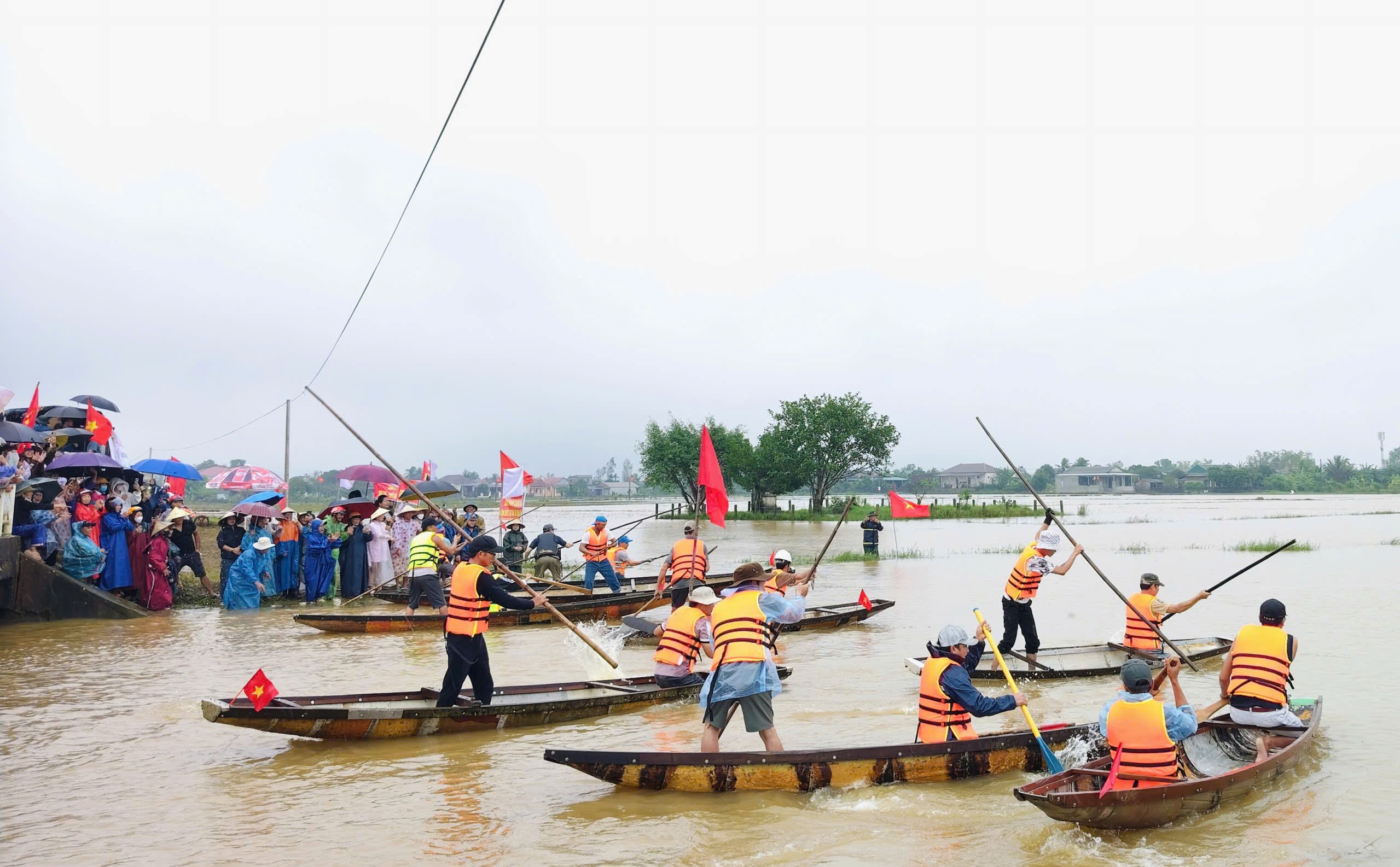 Năm nay, hội đua thu hút 8 đội thi đến từ 8 xóm trên địa bàn thôn. Mỗi đội thi sử dụng ghe nhôm, điều khiển bằng sào tre truyền thống – nét đặc trưng gắn liền với đời sống sinh hoạt vùng thường xuyên chịu ảnh hưởng mưa lũ. Đây là hoạt động được người dân duy trì suốt nhiều năm, vừa rèn luyện thể lực và kỹ năng ứng phó thiên tai, vừa góp phần tăng cường tinh thần đoàn kết cộng đồng.
