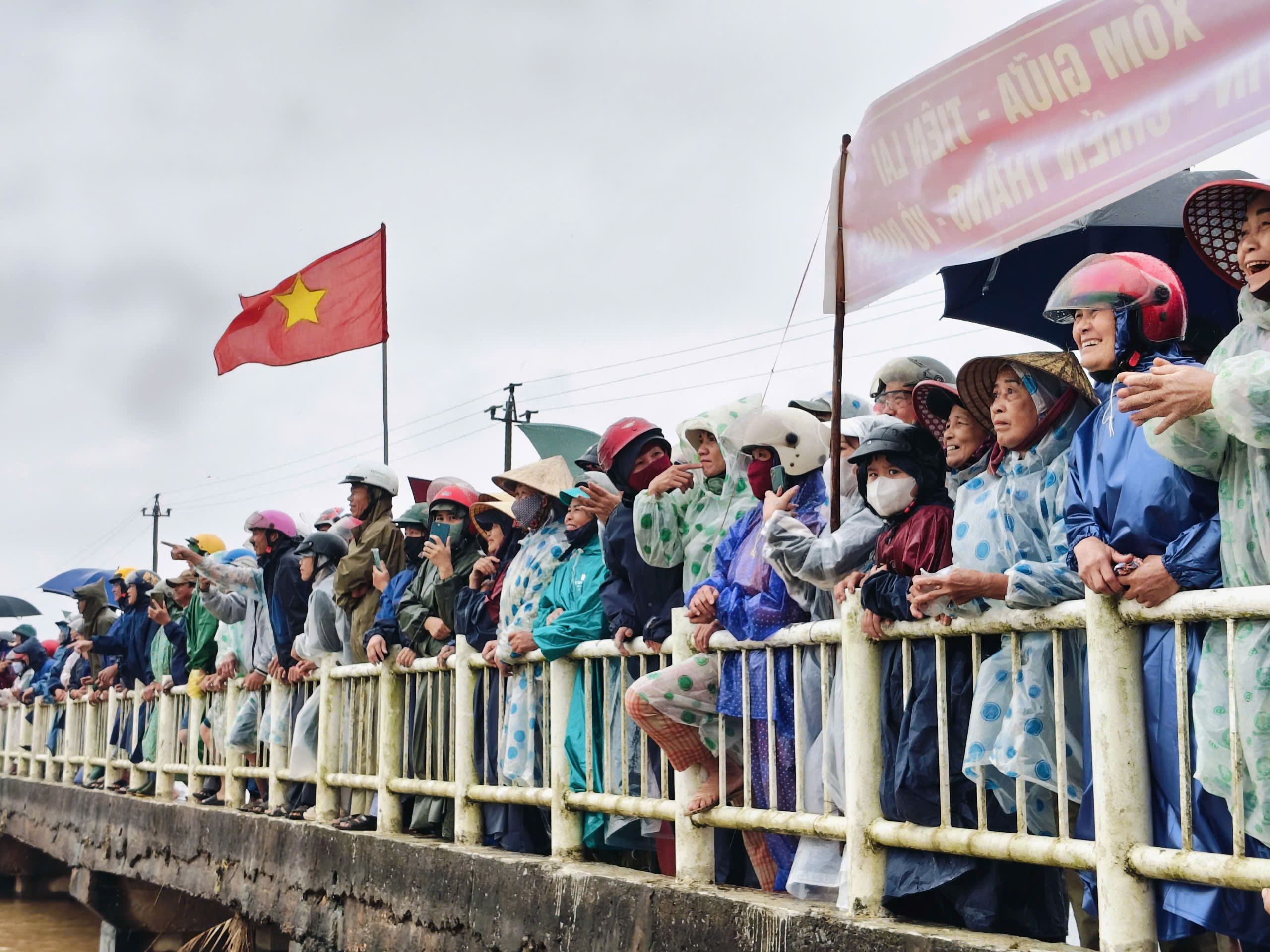 Không quản ngại mưa gió, hàng trăm người dân đã đổ về Rào Tiên Lai để cổ vũ cho các đội thi. Tiếng trống, tiếng reo hò vang dội tạo nên một không khí lễ hội vô cùng sôi động và náo nhiệt.