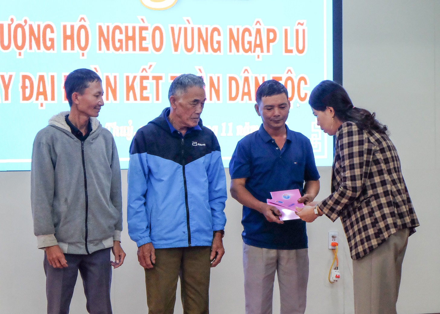 Trao quà cho hộ nghèo vùng ngập lũ nhân Ngày Đại đoàn kết toàn dân tộc tại xã Vĩnh Thuỷ