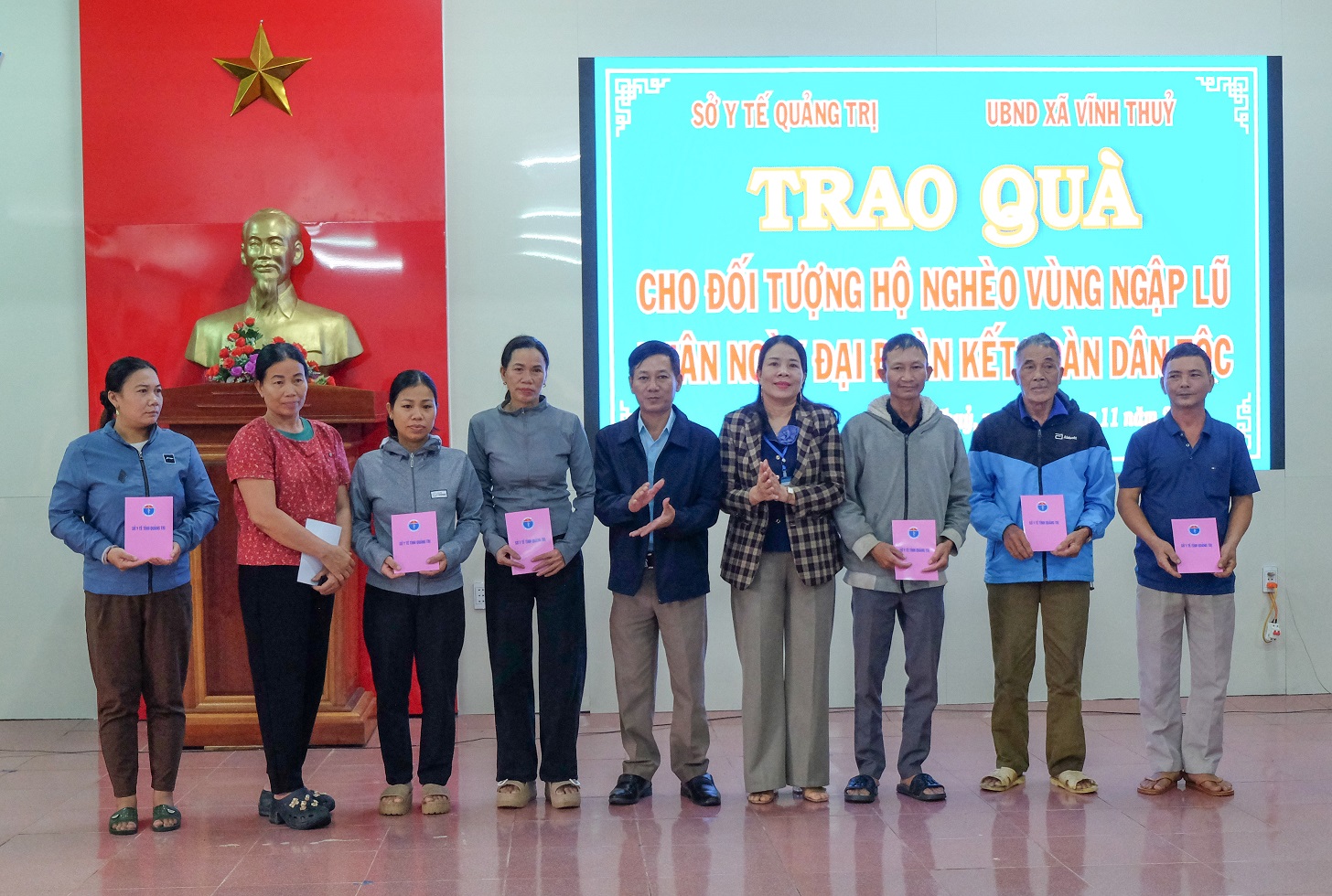Tại buổi trao quà, UBND xã Vĩnh Thủy đã gửi đến bà con 15 suất quà, mỗi suất trị giá 1 triệu đồng. Đây là những phần quà mang ý nghĩa thiết thực của Đoàn cơ sở Sở Y tế tỉnh Quảng Trị kịp thời động viên các hộ gia đình sớm vượt qua khó khăn, ổn định đời sống sau thiên tai.