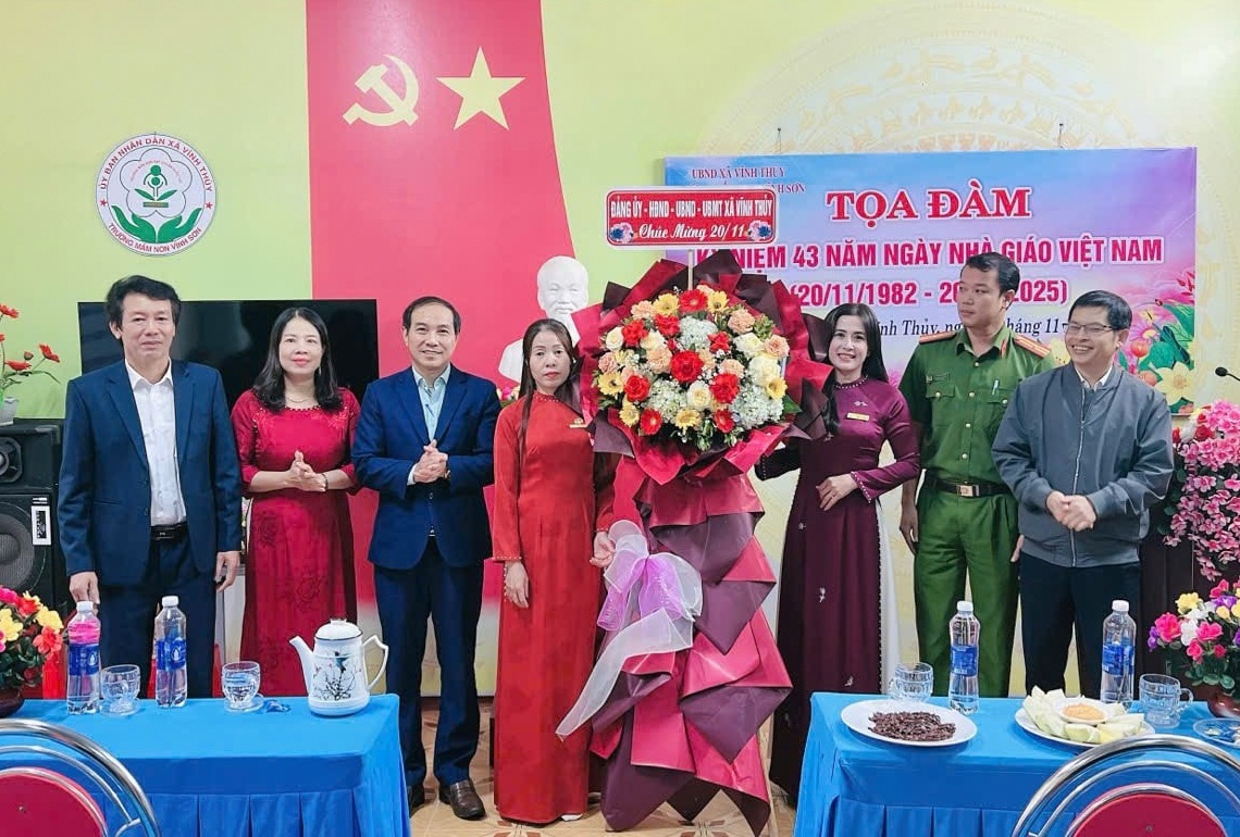 Nhân kỷ niệm 43 năm Ngày Nhà giáo Việt Nam 20/11 (1982- 2025), lãnh đạo xã Vĩnh Thủy đã tổ chức các đoàn đi thăm và chúc mừng đội ngũ thầy cô giáo tại những cơ sở giáo dục trên địa bàn.