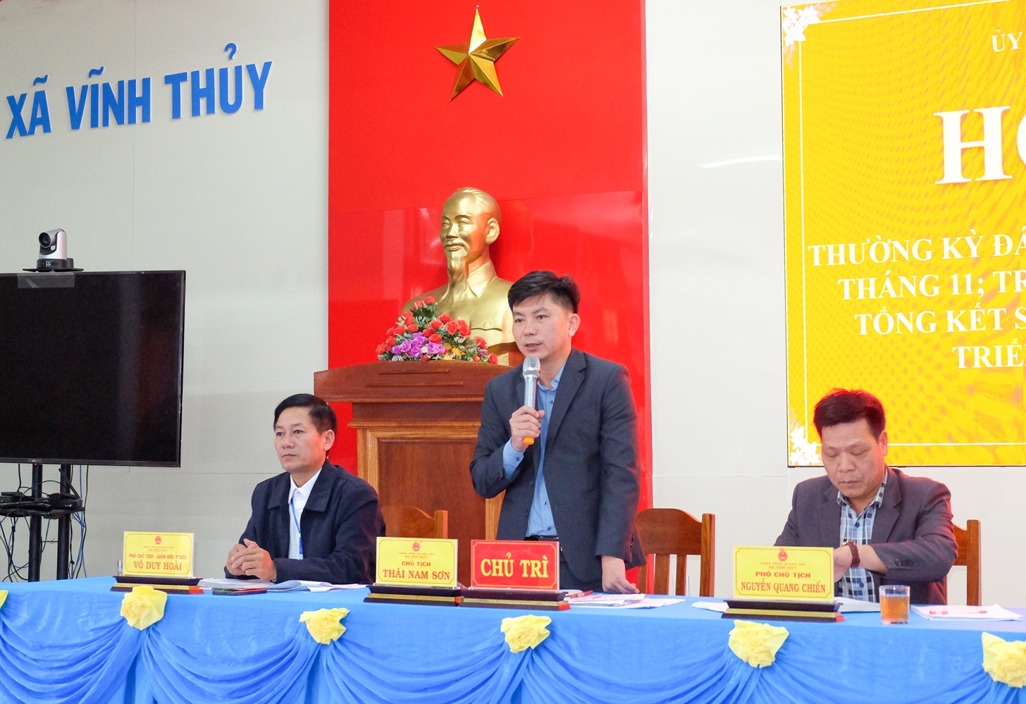Chiều ngày 21/11/2025, UBND xã Vĩnh Thuỷ tổ chức hội nghị thường kỳ đánh giá tình hình kinh tế - xã hội tháng 11 và triển khai phương hướng, nhiệm vụ tháng cuối năm 2025. Tham dự có các đồng chí: Lê Thanh Hải- Phó Bí thư Thường trực Đảng uỷ xã, Lương Ngọc Ninh- Chủ tịch UBMTTQVN xã.