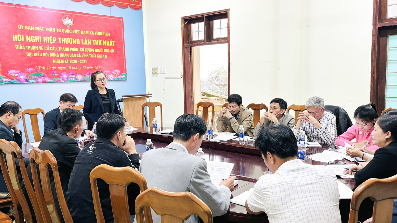 Chiều 10/12/2025, Ủy ban MTTQ Việt Nam xã Vĩnh Thủy tổ chức Hội nghị hiệp thương lần thứ nhất nhằm thỏa thuận cơ cấu, thành phần và số lượng người được giới thiệu ứng cử đại biểu HĐND xã khóa II, nhiệm kỳ 2026- 2031.