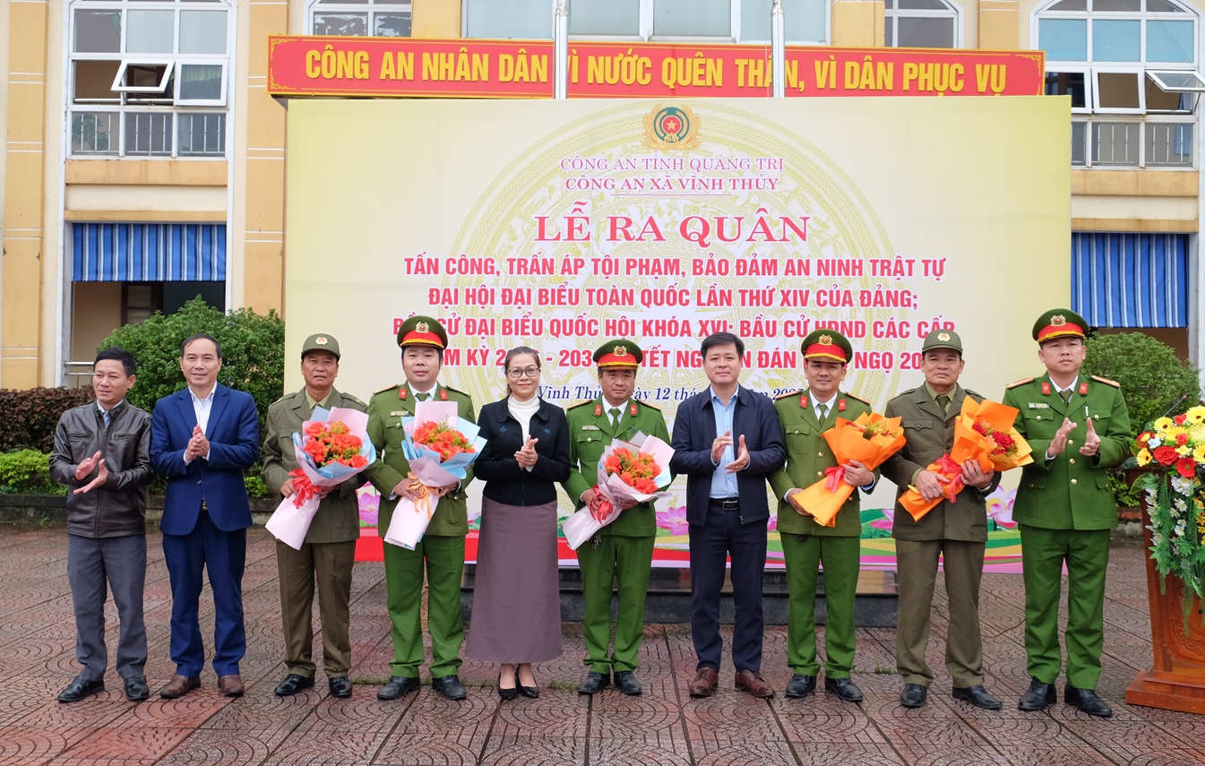 Sáng ngày 12/12/2025, UBND xã Vĩnh Thuỷ phối hợp với Công an xã tổ chức lễ ra quân tấn công, trấn áp tội phạm, bảo đảm an ninh trật tự phục vụ Đại hội đại biểu toàn quốc lần XIV của Đảng, bầu cử đại biểu Quốc hội khóa XVI, bầu cử HĐND các cấp nhiệm kỳ 2025- 2031 và cao điểm Tết Nguyên đán Bính Ngọ 2026. Tham dự buổi lễ có các đồng chí: Nguyễn Thị Thu Hà- Bí thư Đảng uỷ, Chủ tịch HĐND xã; Lê Thanh Hải- Phó Bí thư Thường trực Đảng uỷ; Lương Ngọc Ninh- Chủ tịch UBND xã; Võ Duy Hoài- Phó Chủ tịch UBND xã.