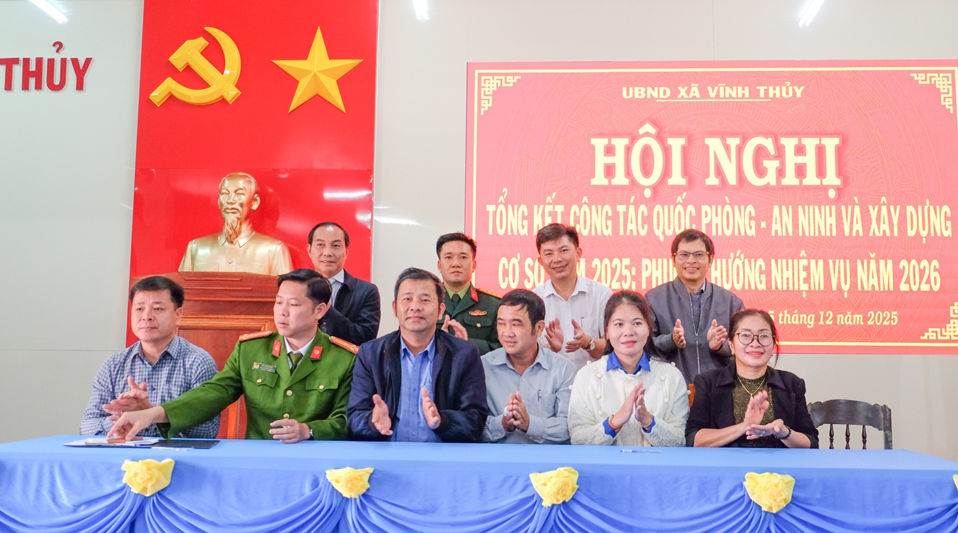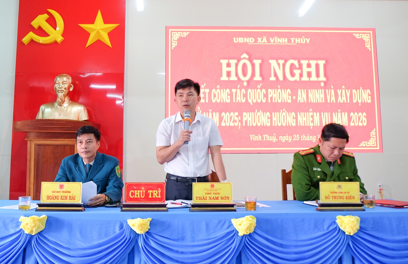 Sáng ngày 25/12/2025, UBND xã Vĩnh Thủy tổ chức hội nghị tổng kết công tác Quốc phòng- An ninh và xây dựng cơ sở năm 2025, triển khai phương hướng, nhiệm vụ năm 2026.