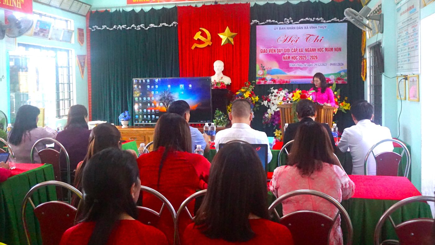 Hôm nay, 30/12/2025, tại trường Mầm Non Vĩnh Thuỷ, UBND xã Vĩnh Thuỷ đã khai mạc Hội thi giáo viên dạy giỏi cấp xã ngành học Mầm non giỏi năm học 2025–2026. Tham dự có đồng chí Võ Duy Hoài – Phó Chủ tịch UBND xã.