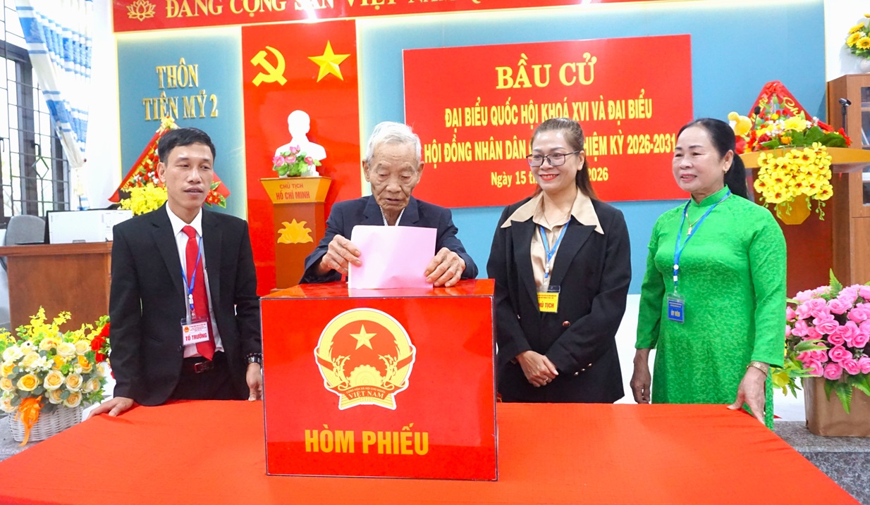 Tại khu vực bỏ phiếu số 9 gồm các thôn Phan Hiền và Huỳnh Xá Hạ, từ sáng sớm người dân đã tập trung khá đông tại điểm bỏ phiếu. Đồng chí Thái Nam Sơn- Chủ tịch UBND xã đến dự, thăm hỏi và động viên cử tri tham gia bỏ phiếu. Không khí tại đây diễn ra nghiêm túc nhưng cũng rất phấn khởi; các cử tri thực hiện các bước bỏ phiếu theo hướng dẫn của tổ bầu cử, đảm bảo đúng quy trình, dân chủ và minh bạch.